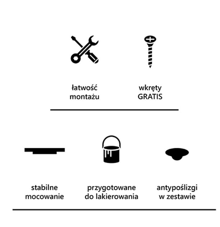 Produkt jest wyszlifowany w stanie surowym, co daje Ci pełną swobodę w wykończeniu – możesz go olejować, lakierować, malować i dopasować do stylu swojego wnętrza. Pamiętaj, że drewno bukowe jest naturalnym materiałem, dlatego kolorystyka może nieznacznie różnić się od prezentowanego zdjęcia.